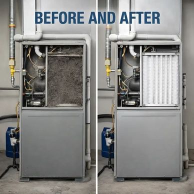 When a furnace filter is clogged, your system cannot pull in enough air to heat properly. The blower has to run longer and harder, yet delivers weaker airflow through the vents. That wasted effort means higher energy bills and more wear on expensive components. Dirty ductwork makes it worse by adding extra resistance and letting dust, pet hair, and mold spores recirculate every time the heater kicks on.